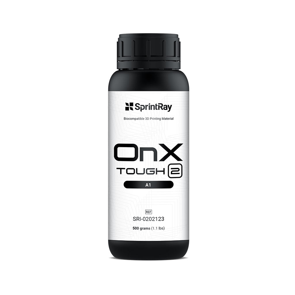 SprintRay OnX Tough 2, is a groundbreaking dental 3D printing resin that has received FDA clearance for use in creating fixed hybrid dentures. The resin leverages cutting-edge NanoFusion™ technology, which set a new industry standard by offering exceptional durability and visual quality.